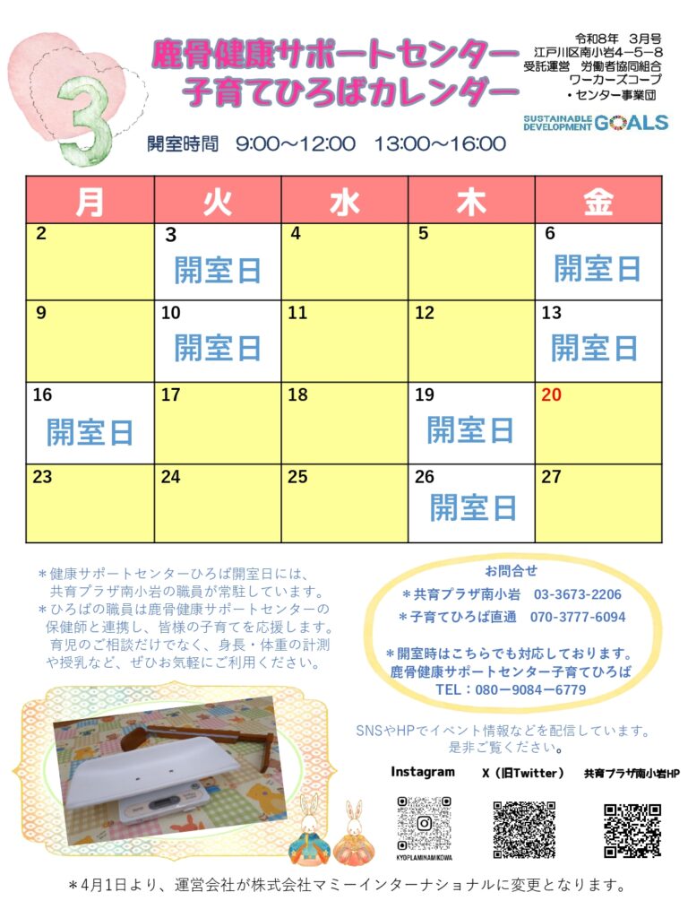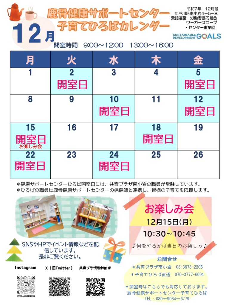 - 乳幼児と保護者:午前9時から午後5時